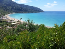 Korfu (Kérkyra) ist mit 585,312 km² die zweitgrößte der Ionischen Inseln und siebtgrößte Griechenlands. Sie liegt südöstlich des italienischen „Stiefelabsatzes“ und nähert sich, getrennt durch die Straße von Korfu, im Norden bis auf zwei Kilometer der albanischen Küste. Wegen ihres für mediterrane Verhältnisse ausgeglichenen Klimas mit, submediterranen und zentraleuropäischen Einflüssen wird Kerkyra auch „die grüne Insel“ genannt. Sie zählt zu den wohlhabendsten Regionen Griechenlands.